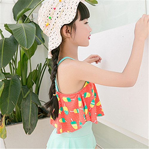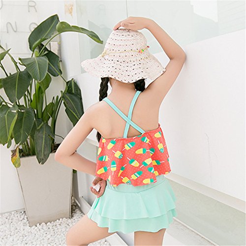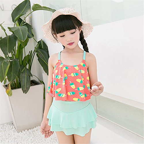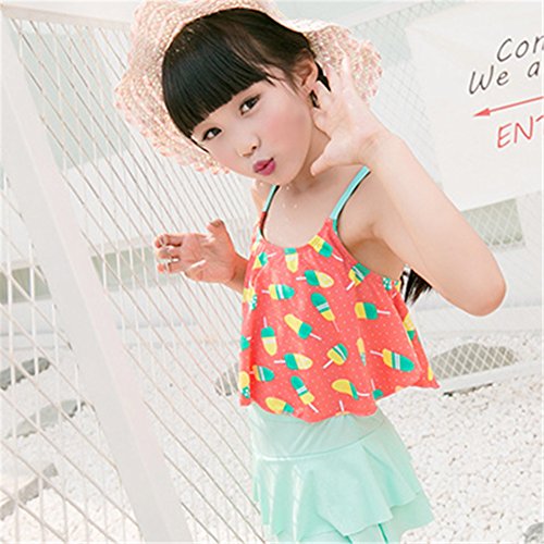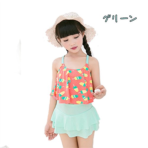 キッズ水着 子供 水着 女の子 アイスクリーム 子供水着 可愛い みずぎ 3色入 オシャレ 2点セット タンキニ かわいい アイスクリーム柄 ピンク グリーン イエロー (XL, グリーン)