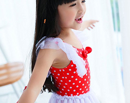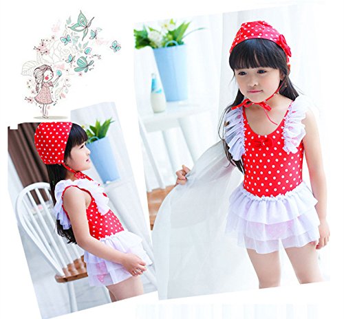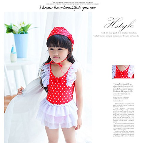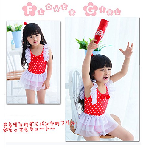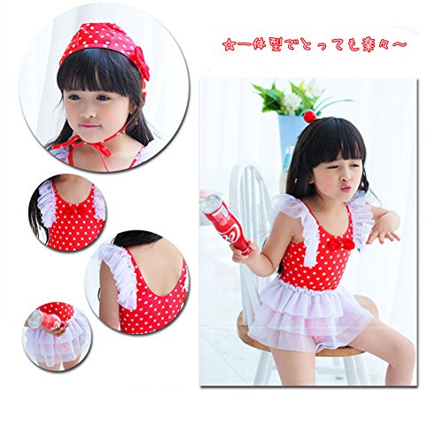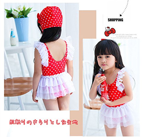 女の子 水着 ワンピース 子供水着 キッズ水着 水玉柄 スクール水着 スイムウエア ワンピース ドット柄 レース ワンピーススイムウエア 女の子 子供水着 みずぎ かわいい レース 水着 オシャレ ワンピース スイムウエア ブルー (L, レッド)