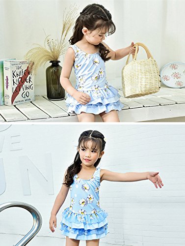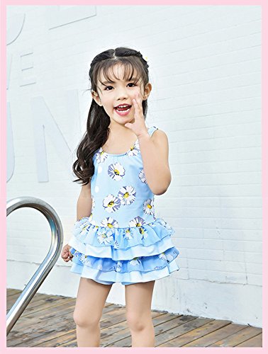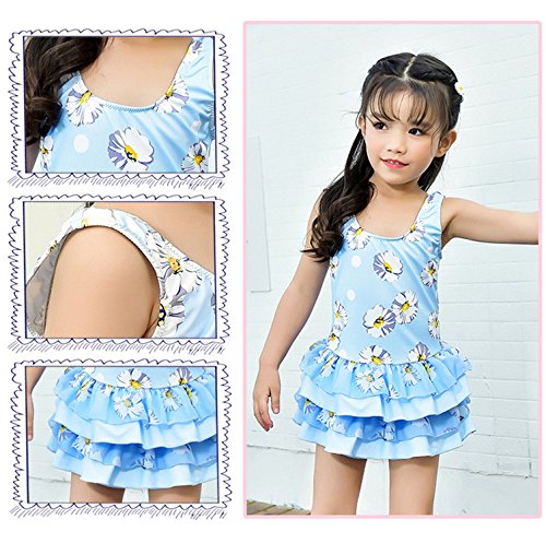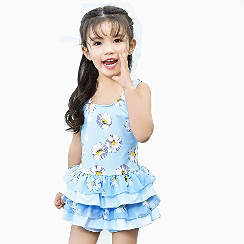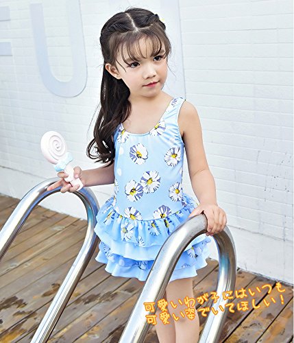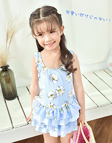 子供水着 キッズ水着 水着 女の子 花柄 デイジー ワンピーススイムウエア 女の子 子供水着 みずぎ かわいい 花柄 水着 オシャレ ワンピース スイムウエア ブルー (M, ブルー)