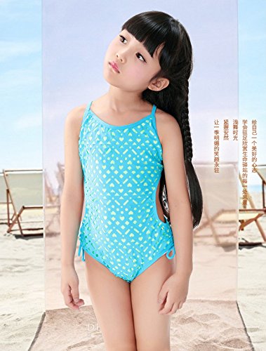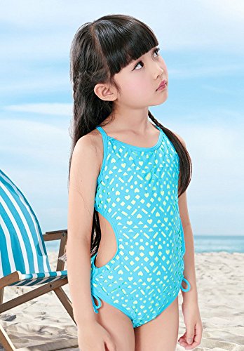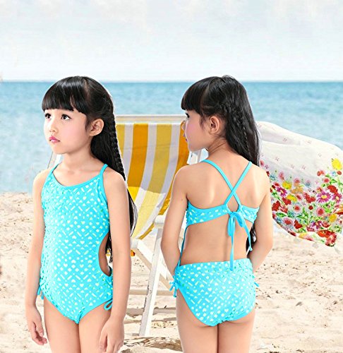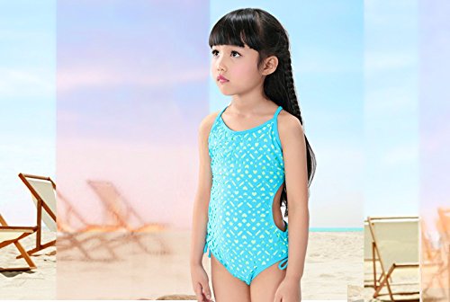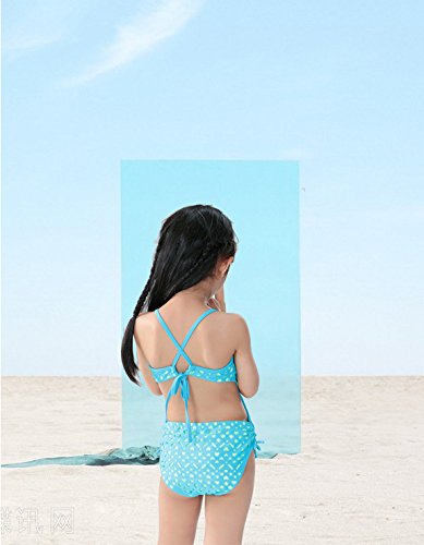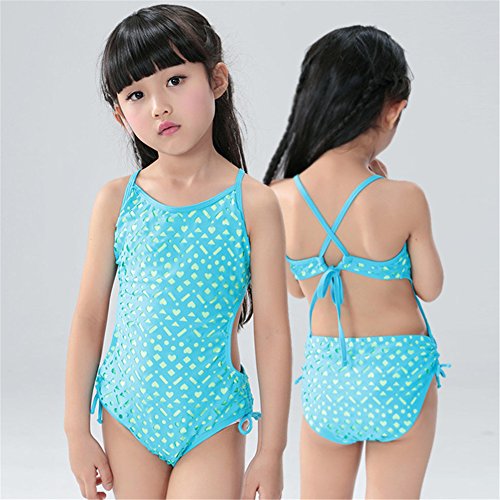 女の子 水着 ワンピース 子供水着 キッズ水着 ドット柄 スクール水着 スイムウエア ワンピース ドット柄 女の子 子供水着 みずぎ かわいい ドット柄 水着 オシャレ ワンピース スイムウエア ブルー (L, ブルー)