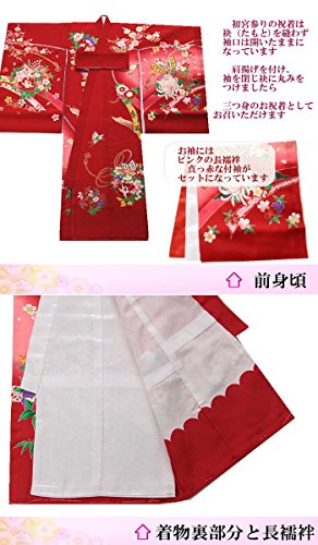 初宮参りの祝い着は、袂は縫わず袖口は広いままになっていますが、肩揚げをとって袖に丸みをつければ三つ身のお祝着として着用することができます。