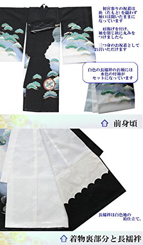 初宮参りの祝い着は、袂は縫わず袖口は広いままになっていますが、肩揚げをとって袖に丸みをつければ三つ身のお祝着として着用することができます。