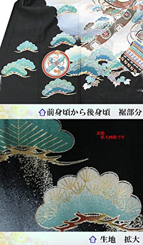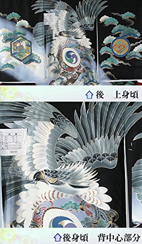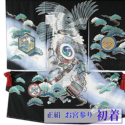 宮参り着物 -101- 正絹 祝着 お宮参り 男 着物 男の子 初着 百日祝い シルク100% 日本製 黒 鷹/太鼓