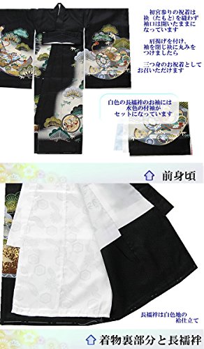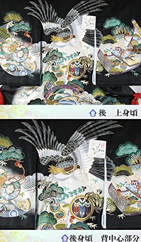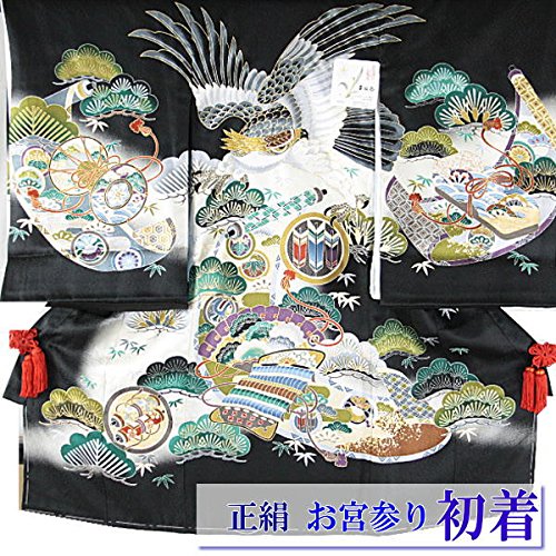 宮参り着物 -107- 正絹 祝着 お宮参り 男 着物 男の子 初着 百日祝い シルク100% 日本製 黒 鷹 刺繍