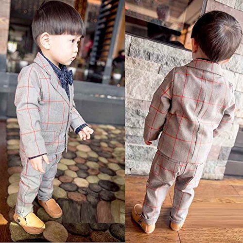 120cm グレー 2点セット チェック柄 上下 スーツ 男の子 フォーマル ジャケット タキシード ベビー メンズ 卒業式 入学式 子供 七五三 結婚式 (120cm, グレー)