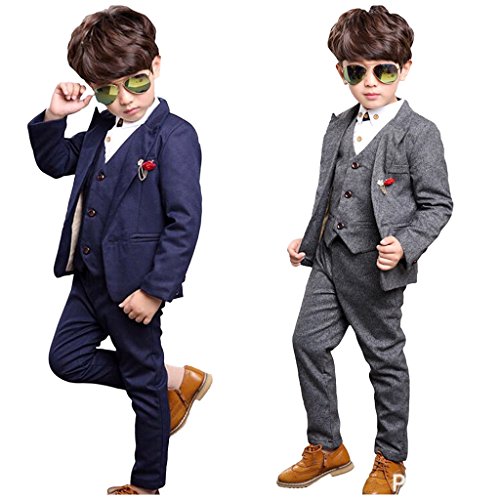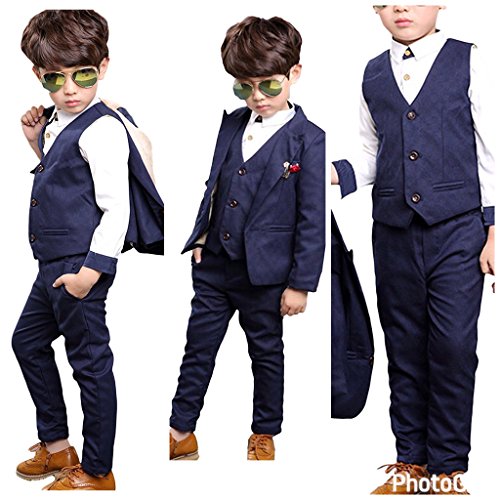 ネイビー120cm 3点セット キッズ ボーイ フォーマル スーツ 子供服 結婚式 卒園式 入園式 入学式 七五三 発表会 お呼ばれ … (120cm, ネイビー)