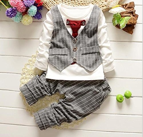 グレー 90cm キッズ ストライプ フォーマル スーツ ベビー 礼服 長袖 秋 冬 子供 ロンパース 上下セット 結婚式 卒園式 入園式 入学式 七五三 発表会 お呼ばれ (90, グレー)