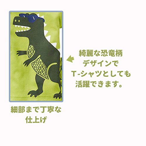 キッズ パジャマ ベビー ルームウェア 子供服 男の子 上下セット アニマル 春 秋 冬 恐竜柄 プリント 寝巻き ボーイズ 半袖 パジャマ ルームウェア 半袖パジャマ 寝間着 上下セット ショート パンツ カジュアル かっこいい かわいい キャラクター 柄 ウエスト ゴム 上下 Tシャツ ズボン 部屋着 ナイ トウェア サックス リラックスウェア T-シャツ (90, グリーン)