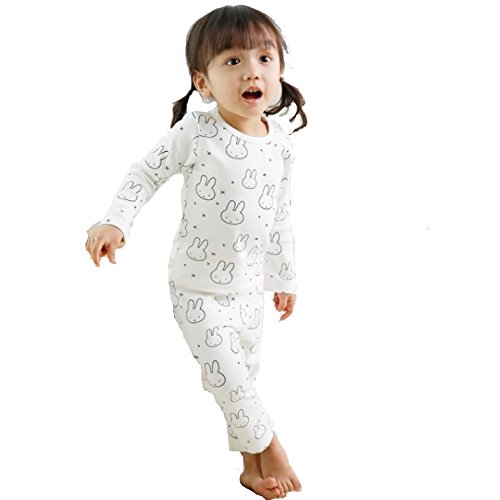 yuzuyu_shop 子供服 パジャマ うさぎ 男女兼用 部屋着 上下セット キッズ服 (80cm)