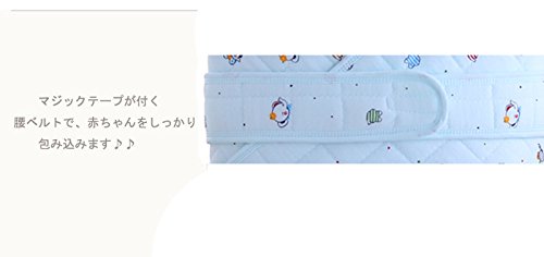 - ☆マジックテープが付く 腰ベルトで、赤ちゃんをしっかり 包み込みます。おくるみに包まれると母体にいるような感覚で赤ちゃんは 安心して眠れます。