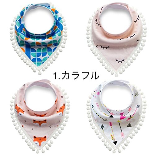 yuzuyu ベビー スタイ 4枚セット サイズ調節可能 コットン100% よだれかけ (スタンダード, 1.カラフル)