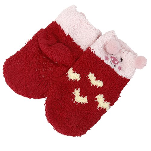 【ノーブランド品】かわいい 赤ちゃん 柔らかい 暖かい ふわふわ ベッドソックス スリッパ 豚のパターン 幼児 靴下