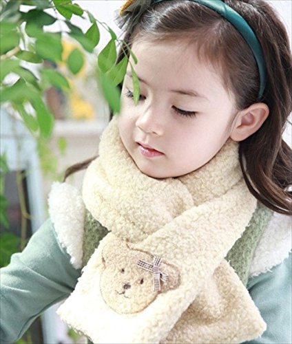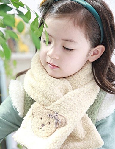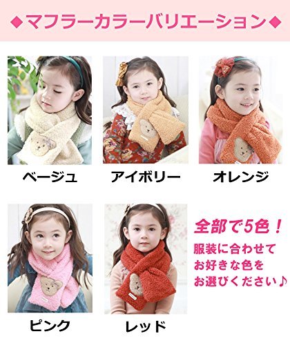 子供マフラー・キッズ用・ふわふわ・くまのワンポイント付き 可愛くてふわふわキッズ用マフラー 全5色 (アイボリー)