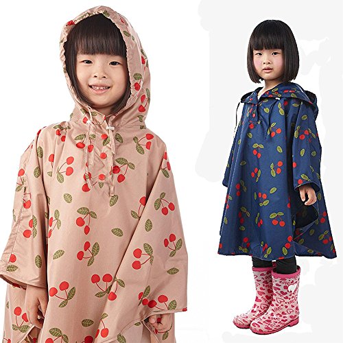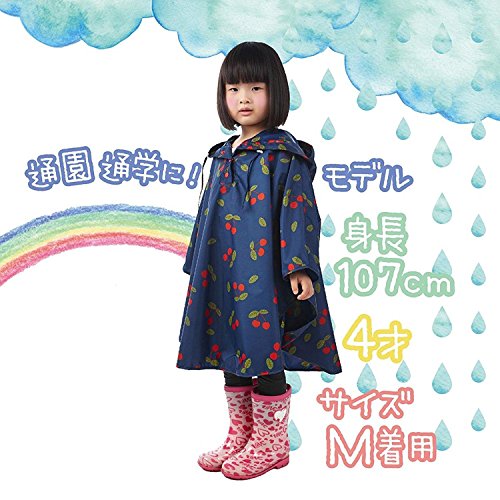 キッズ レインコート 女の子 ガールズ 子ども 子供 携帯ポーチ付き おしゃれ かわいい レインポンチョ ゴム 柄 カッパ 新学期 用 子どもレインコート ランドセル 小学生 雨具 レインウェア 防水 防風 通学 バイク 登山 アウトドア 100 110 120 (M, ネイビー)