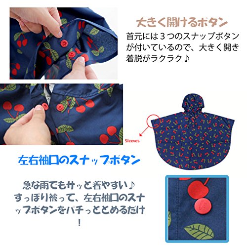 - ☆急な雨でもサッと着やすい♪ すっぽり被って、左右袖口のスナップボタンをパチっととめるだけ!フードには風で飛ばないよう結び紐付き。