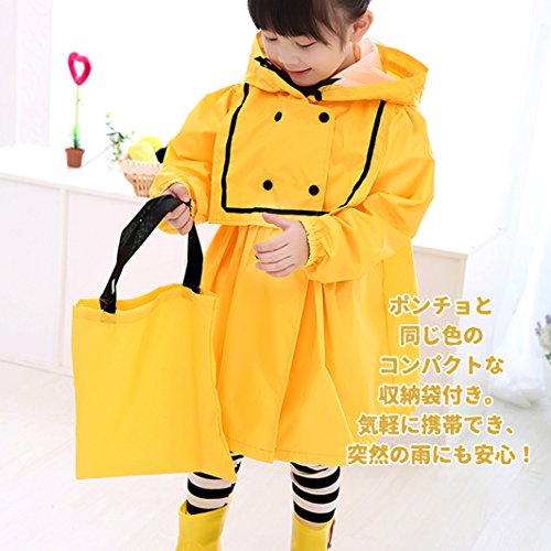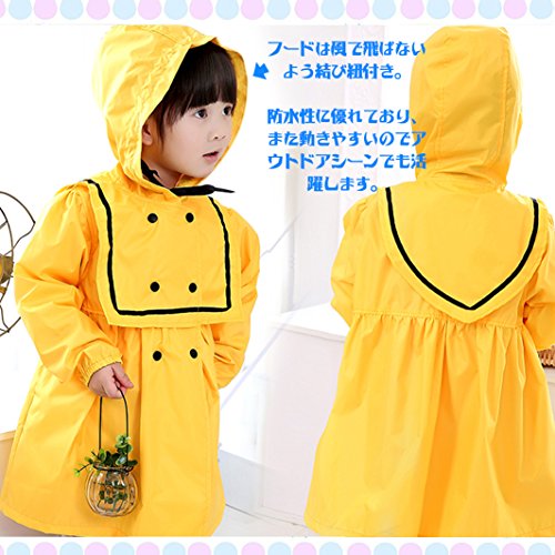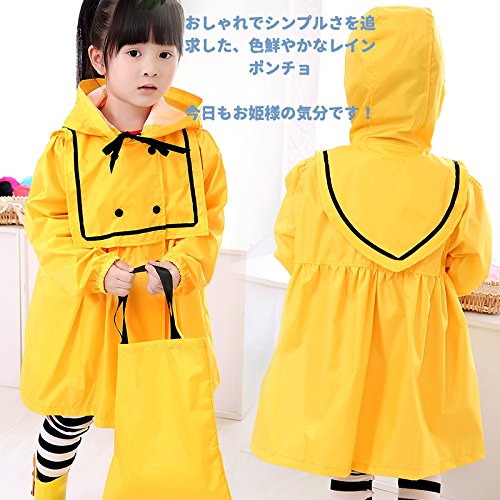 子ども 子供 キッズ レインコート 女の子 110 90 100 120 フード 結び紐 カッパ 雨具 新学期用 子どもレインコート ランドセル 男の子 雨具 カッパ 雨カッパ セラー レインウェア ポンチョ 防水 防風 通学 (L, イエロー)
