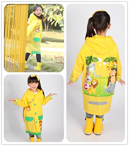 子供 レインポンチョ レインコート キッズ 男の子 90 110 子供用 反射テープ 付き 動物柄 かわいい レインポンチョ 動物 柄 フリーノートカッパ 雨具 新学期用 子どもレインコート ランドセル 男女兼用 カッパ 雨具 レインウェア ポンチョ 防水 防風 通学 グリーン イエロー 80cm センチ (S, イエロー)