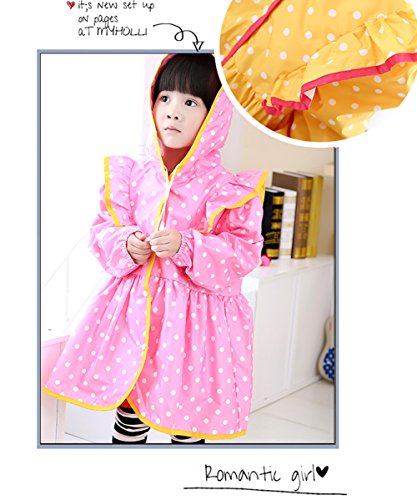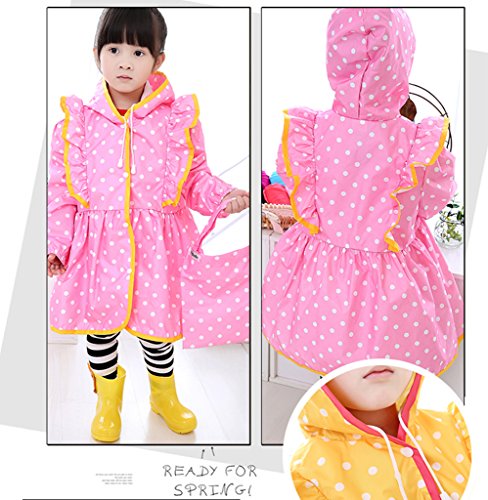 子供用 キッズ レインコート 女の子 キッズ用 リボン トッド 柄 スカラップ おしゃれ かわいい レインポンチョ カッパ 新学期 用 子どもレインコート レイングッズ ランドセル 小学生 雨具 レインウェア 防水 防風 通学 バイク 登山 アウトドア 90 100 110 120 130 フード 結び紐 (XL, ピンク)
