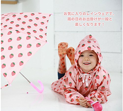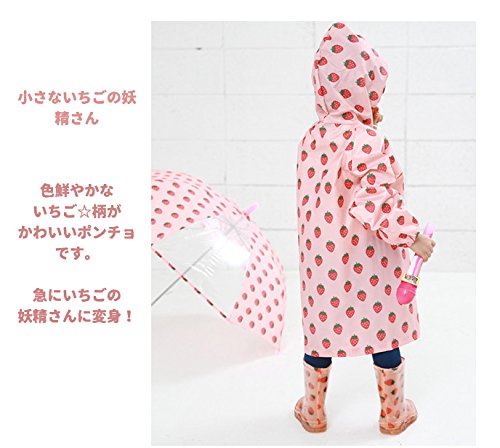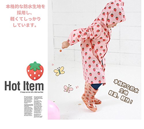 子ども 子供 キッズ レインコート 男の子 女の子 100 110 120 苺 いちご 柄 カッパ 雨具 新学期用 子どもレインコート ランドセル 男女兼用 雨具 カッパ 雨カッパ レインウェア ポンチョ 防水 防風 通学 (M, ピンク)