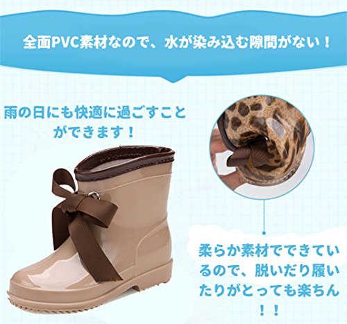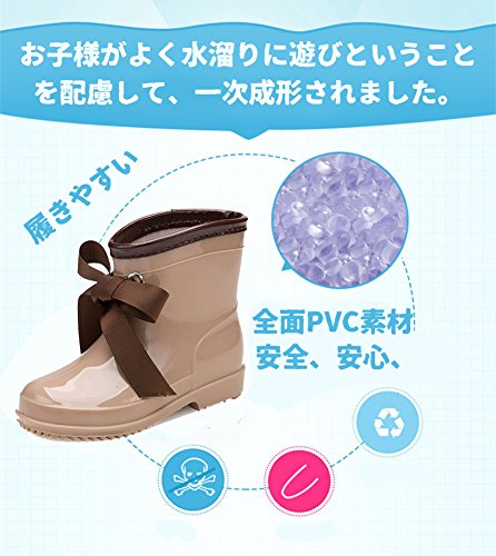 子供 レインシューズ キッズ 女の子 梅雨 リボン付き 豪雨対策 プレゼント 防水 防滑 子供用 雨靴 滑りにくい アウトドア お出かけ 学校 幼稚園 可愛い キッズ長ぐつ ショート レインシューズ スノーブーツ 子供15cm 16cm 17cm センチ (17cm, ブラウン)