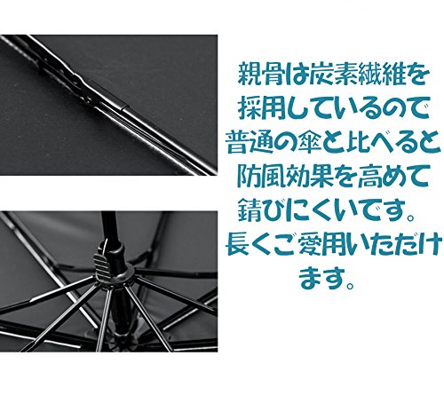 【高強度】丈夫で高密度、高強度、撥水加工(ナノメートル加工)されたポンジーとテフロン生地で豪雨の中に、傘の下に入れば、体のどこにも濡れなく、普通のテリレン製傘より撥水性は光り、水滴も簡単に振り払えます。親骨は合金を採用しているので普通の傘と比べると防風効果を高めて錆びにくいです。長くご愛用いただけます。