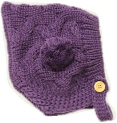 【ノーブランド品】 ベビーキッズ 前ボタン付きエルフニット帽(ボンボン) パープル