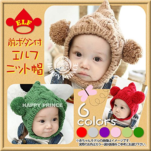 - ベビーがかわいいエルフに変身!キュートなニット帽♪前ボタンがついているから防寒性もUPし、脱げたりする心配なし☆
