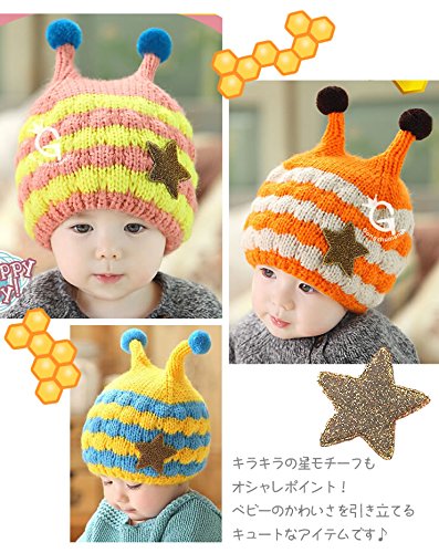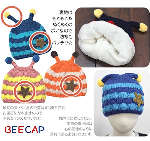可愛いハチのニット帽♪ ボーダー柄と耳でハチさんそっくり!裏地は もこもこ&ぬくぬくのボアなので防寒もバッチリ☆ キラキラの星モチーフもオシャレポイント! ベビーのかわいさを引き立てるキュートなアイテムです! ■素材:アクリル、ポリエステル ■サイズ:頭回り約46~54cm位(商品によって若干のサイズの誤差がございます。予めご了承くださいませ) ■生産国:中国 ※ご注意触覚の長さや、星の位置はまちまちです。お選びになれませんので予めご了承くださいませ。また、触覚は自立しません。実際の着用図はトルソー画像のように垂れ下がるようになります。