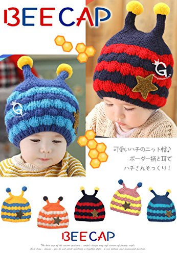 - 可愛いハチのニット帽♪ ボーダー柄と耳でハチさんそっくり!