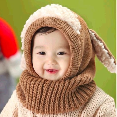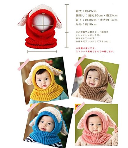 ベビー&キッズ 用のキュートなうさぎちゃん風ニット帽子です。 大切なお子様の頭だけではなく首やほっぺも暖かくお守りします。 ご自宅用にもプレゼント用にも最適な一品です。