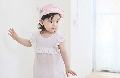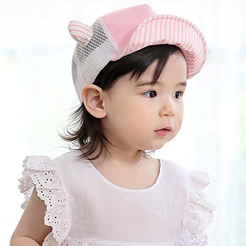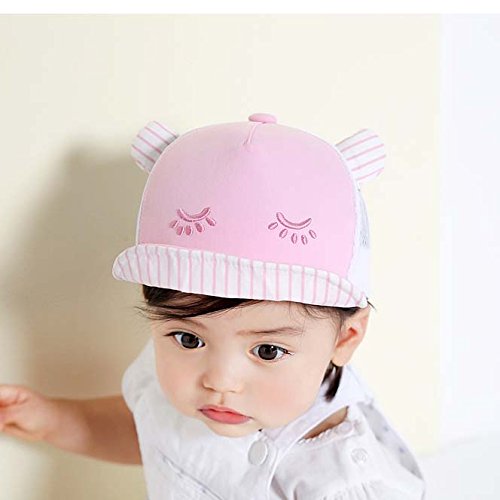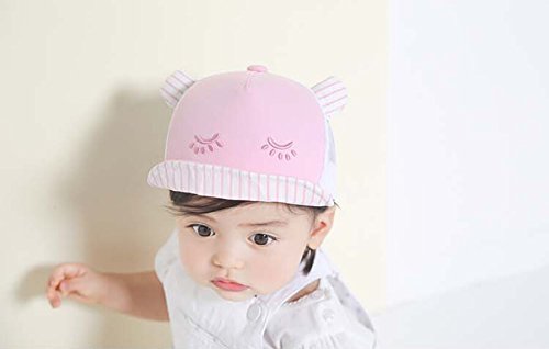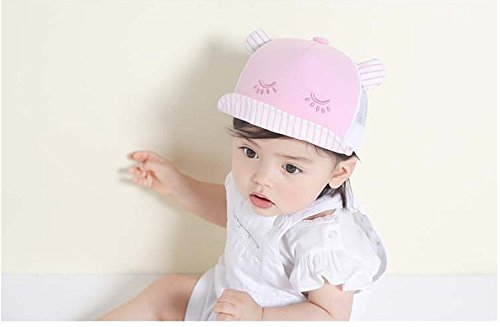 帽子 ベビー 女の子 男の子 夏 キャップ キッズ 赤ちゃん ストライプ コットン 日よけ 日差し uv 新生児 出産祝い baby セレモニー ベビー用 子供 お出かけ 紫外線対策 (46-50cm, ピンク)