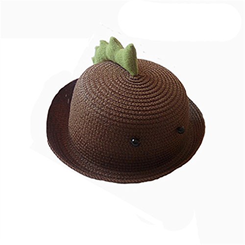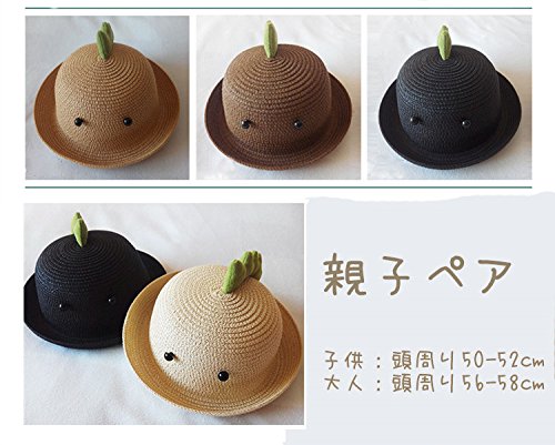 キッズ帽子 麦わら帽子 子供 恐竜 帽子 男の子 キッズ 親子ペア ビーチハット つば広 かわいい 恐竜 子供 女の子 春夏 紫外線対策 UVカット 日焼け防止 ハット (子供:(頭周り50-52)cm, コーヒー)