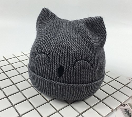 赤ちゃん用帽子 ネコ 顔 全6色 おしゃれ かわいい ベビー カジュアル (グレー)