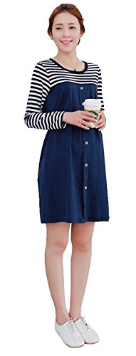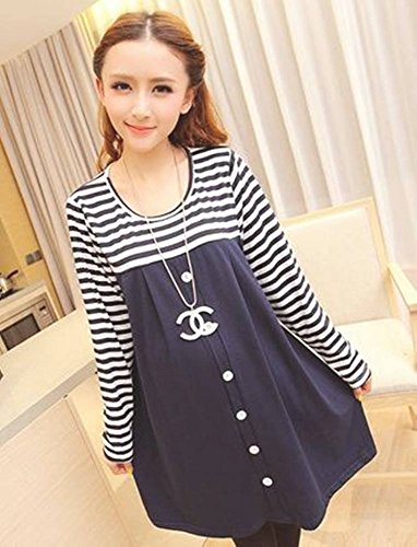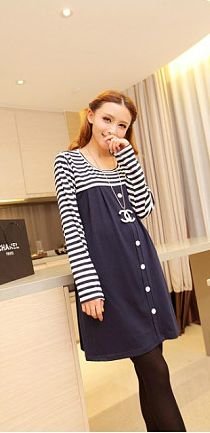 チュニックスタイルマタニティー・ネイビーボーダー・ソフトな素材で着心地満点!(Lサイズ)