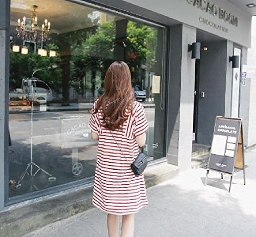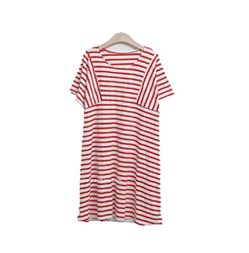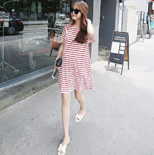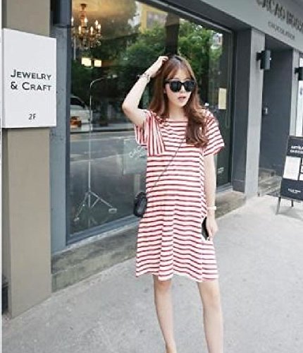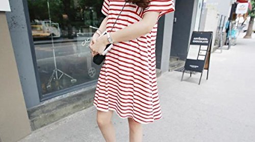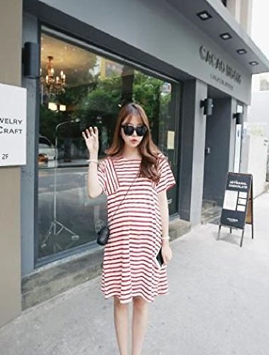 ママでも オシャレしたい!可愛い マタニティ ワンピース ストライプ 夏向け (L, 赤白ストライプ)