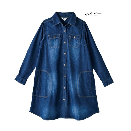 デニムシャツワンピース 青 M