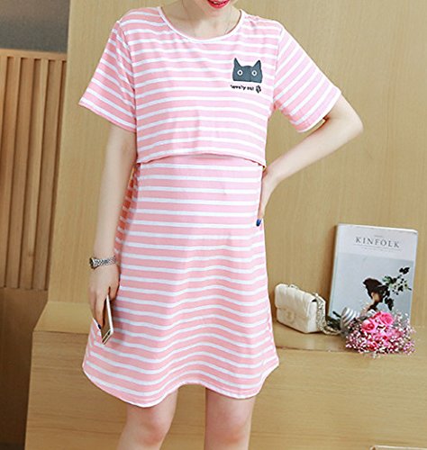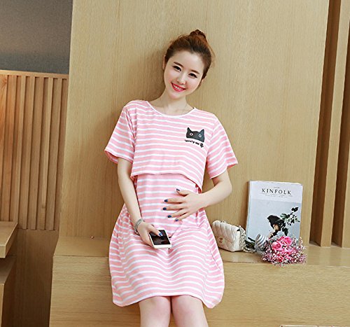 マタニティ ワンピース 産前 産後 対応 妊婦服 授乳服 春 夏 ワンピース 無地 コットン オシャレ ボーダー柄 ゆったり 授乳口付き マタニティ ポケット ピンク (4XL)