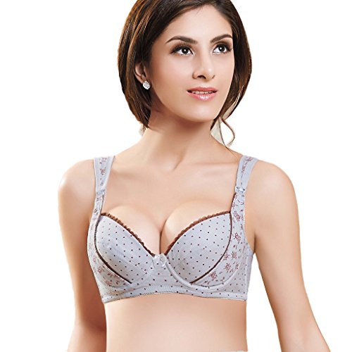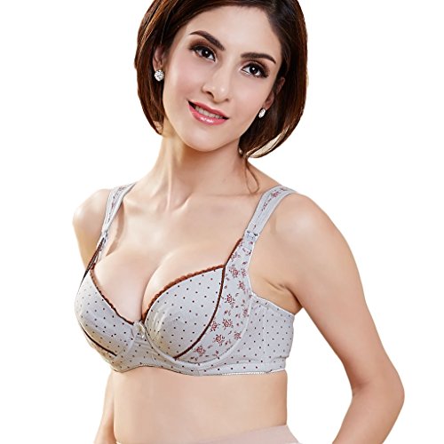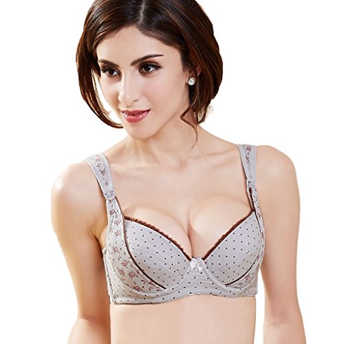 ドット柄 マタニティ ブラ 前開き 授乳便利 綿 お肌にやさしい バスト崩れ防止 (80C, グレー)