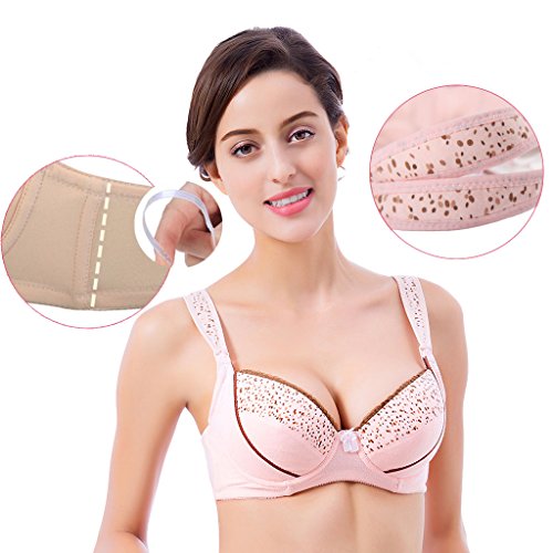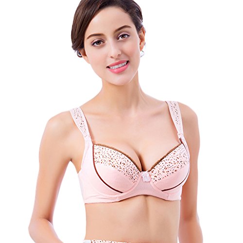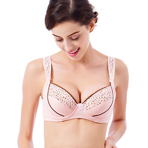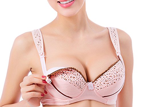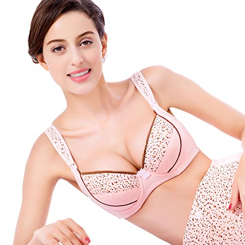 ドット柄 マタニティ ブラ 前開き 授乳便利 綿 お肌にやさしい バスト崩れ防止 (90C, ピンク)