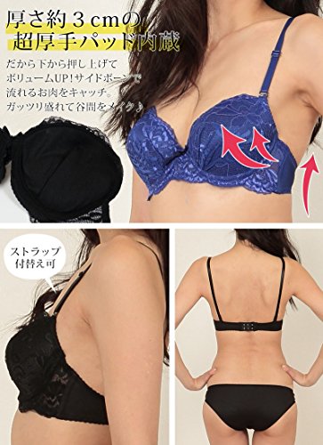 - [素材・加工]ブラジャー:ポリエステル/ナイロン/その他ショーツ 身生地:ポリエステル90%/ポリウレタン10%レース部分:ナイロン93%/ポリウレタン7%3/4カップブラ極厚パット内蔵(約3cm):パッドポケットなしストラップ取外し:可フラットワイヤー入りサイドボーンあり※濃色については色落ちする事があります。淡色や白物と一緒に洗ったり、長時間濡れたまで放置しないで下さい。