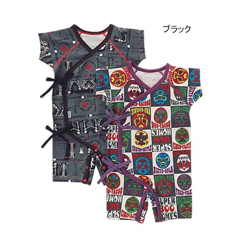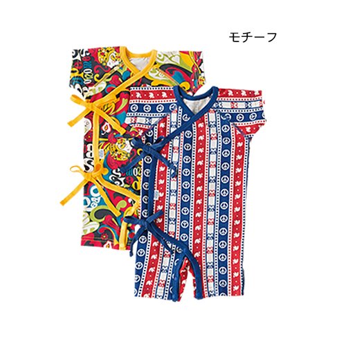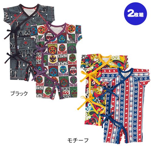 やわらかくてストレッチがきいたライクラ素材の半袖ロンパース。楽しい柄の2枚セットです。