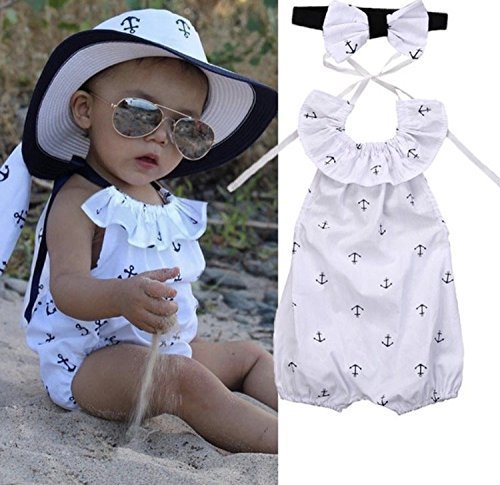 yuzuyu 子供服 マリン ロンパース カバーオール リボン付きヘアバンド セット [並行輸入品]