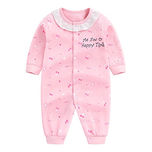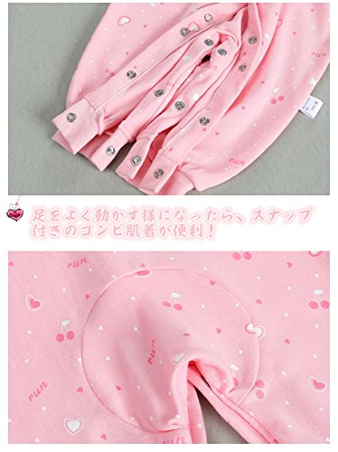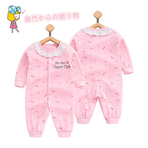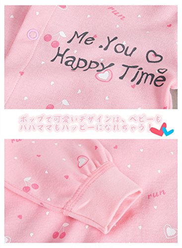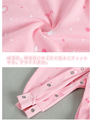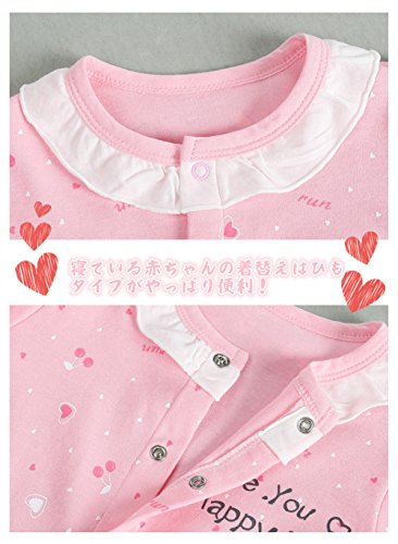 前開き パジャマ ベビー服 女の子 赤ちゃん カバーオール 長袖 薄手 ロンパース かわいい ハート柄 レース 新生児 ルームウェア ベビー服 子供服 ベビー肌着 綿 コットン 出産祝い ギフト プレゼント 60 70 80 cm (73CM, ピンク)