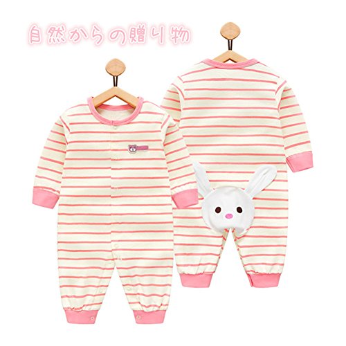 前開き パジャマ ベビー 春 女の子 赤ちゃん カバーオール 長袖 薄手 ロンパース かわいい ウサギ柄 ウサギ 新生児 ルームウェア かわいい ベビー肌着 ベビー服 子供服 ベビー肌着 綿 コットン 出産祝い ギフト プレゼント 60 70 80 cm (90CM)