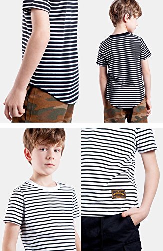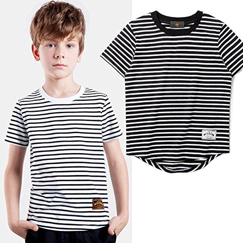 【 韓国スタイル子供服】 夏Tシャツ キッズ /半袖 男 の子/ボーダー柄プリント/ 全2種類から選べる!110-150 Black,110cm