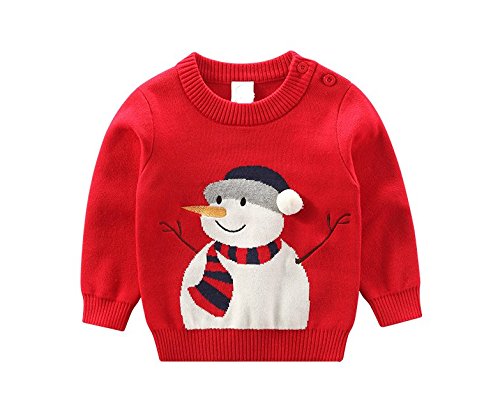 ベビー服 子供服 キッズ セーター 男の子 子供服 サンタクロース コットン 丸首 長袖 出産お祝い 記念日 プレゼント 秋冬トップス ボーイズ カジュアル (73cm, レッド)