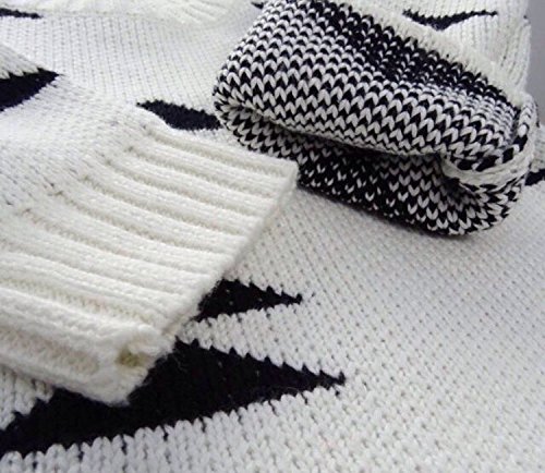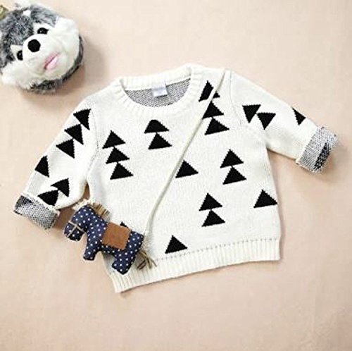 yuzuyu_shop 子供服 男女兼用 男の子 女の子 ニット 三角 トライアングル 冬服 白 黒 (90cm)