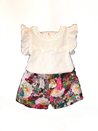 yuzuyu 子供服 2点セット トップス ノースリーブ 白 フリル袖 花柄 ショート パンツ キッズ ベビー 100cm (100cm) [並行輸入品]