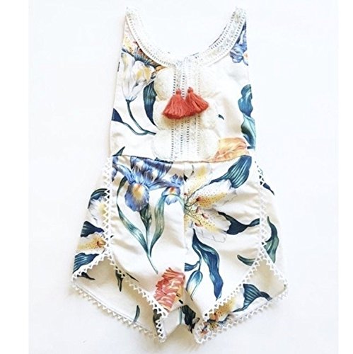 子供服 タッセル付き サロペッ ト 白 キッズ 子供 ベビー 花柄 女の子 (100cm) [並行輸入品]