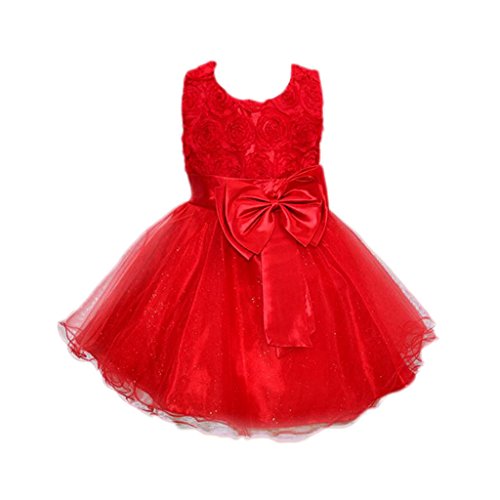 【ノーブランド 品】女の子 キッズドレス 蝶結び ベルト付き プリンセスドレス ウエディングドレス ファッション キュート レッド 身長全6サイズ - 120cm